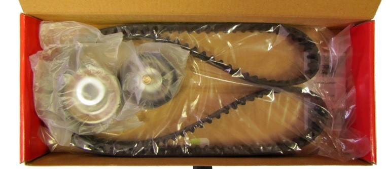 Открываем упаковку комплекта. Теперь мы увидели, в чем же главное отличие оригинального комплекта от поддельного. Внутри оригинального комплекта имеется специальная пластиковая форма для правильного укомплектовании продукции. В поддельном комплекте ролики и ремень ГРМ упакованы в обыкновенные полиэтиленовые пакеты.