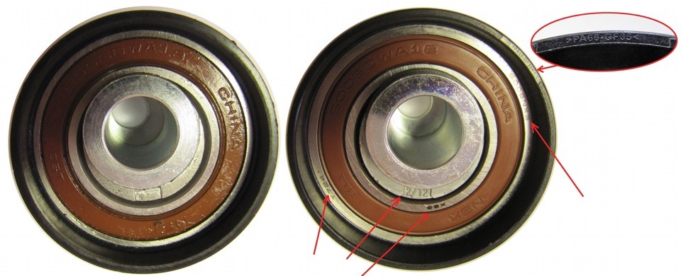 Если еще более внимательно приглядеться, то можно найти маркировку и на пластиковой части оригинального ролика Gates.