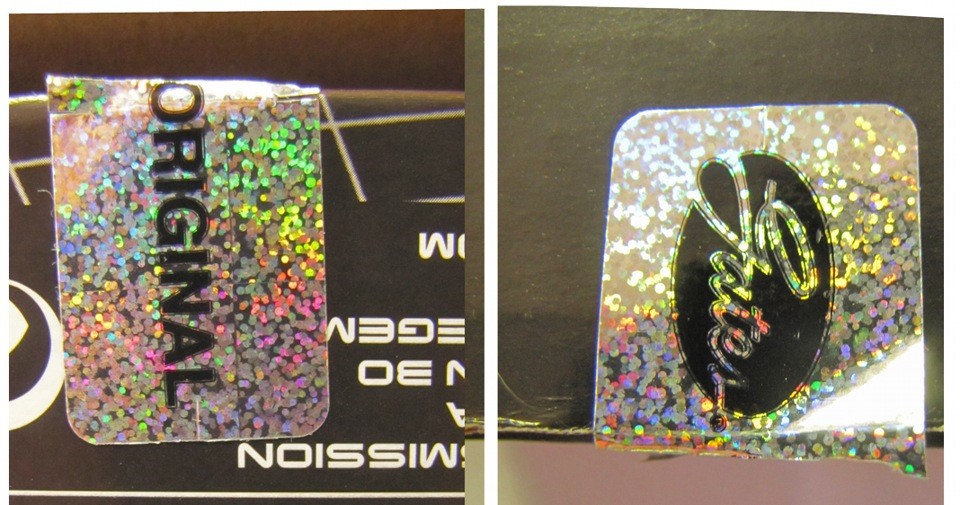 На упаковке с поддельным комплектом даже есть голограмма, и эти две голограммы внешне очень похожи. Но поддельная немнго короче по длинне настоящей примерно на 1 сантиметр, да и преклеена она очень плохо, ее легко можно оторвать…
