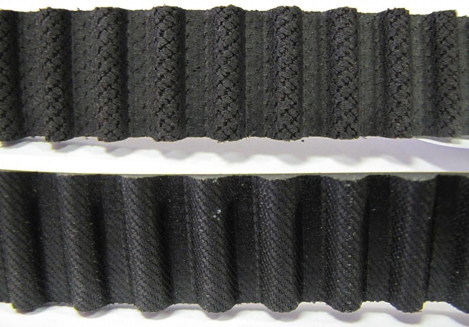 А теперь давайте сравним маркировку на ремнях ГРМ. На оригинальном ремне ГРМ надписи срезаны, тк ремни нарезают из большого рукава уже после нанесения маркировочных надписей. Да и ремни ГРМ визуально отличаются друг от друга по виду.